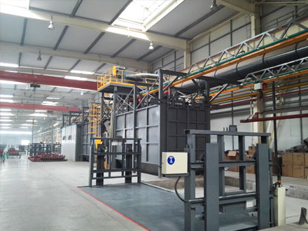 The QT37 hook passing shot blasting machine is mainly used for surface cleaning and strengthening of steel structural components, castings, aluminum alloy components, and other parts. Widely used in industries such as casting, forging machinery, and steel. The QT37 series cleaning machine has the characteristics of no pit, double hooks without changing tracks, compact structure, and high productivity.